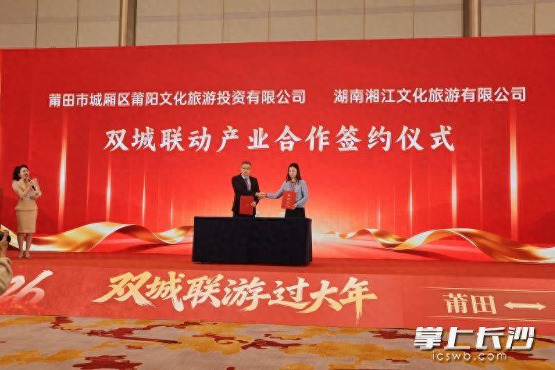 长沙晚报掌上长沙2月3日讯(全媒体记者 宁莎鸥)3日,湖南长沙、福建莆田“双城联游过大年”文旅推介会在长沙举行。湖南长沙和福建莆田正式“牵手”,建立“新春文旅结对关系”,共同打造具有全国影响力的“双城联游过大年”文旅品牌。