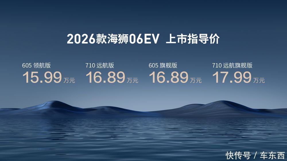 车东西3月9日消息,日前,比亚迪2026款海狮06EV正式上市。新车共推出4款车型,官方指导价15.99万至17.99万元。
